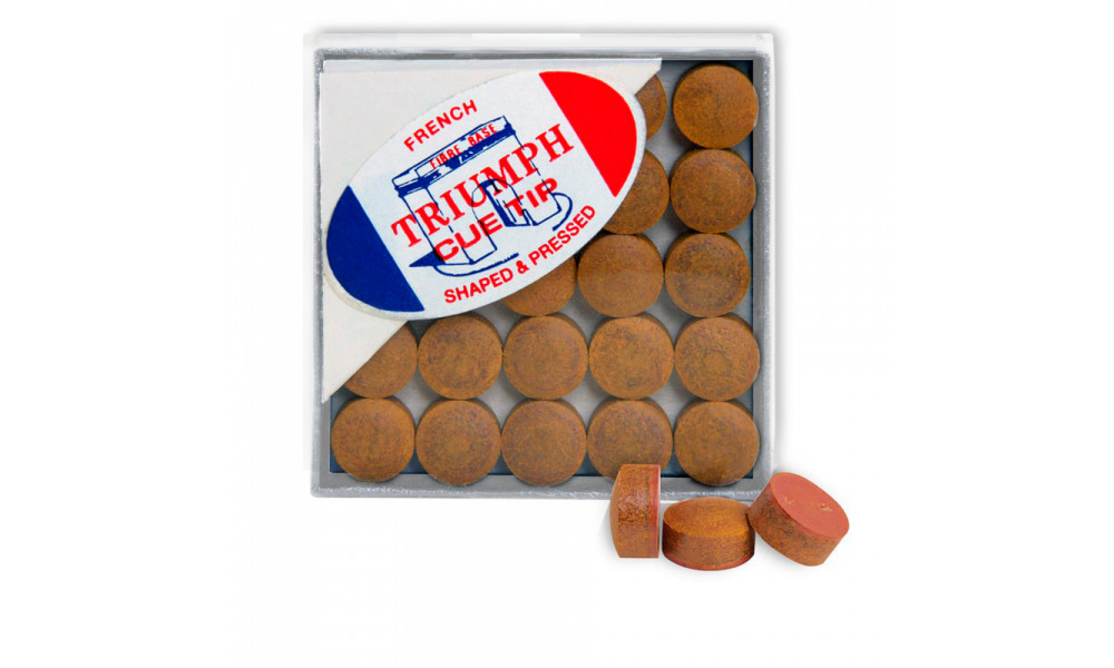 Наклейки Triumph были выпущены на американский рынок в 80-х годах XX века и с тех пор пользуются уважением и спросом у игроков и производителей киев Как и другие наклейки Tweeten Triumph изготавливаются из тончайшей импортной кожи, прошедшей процесс дубления c использованием натуральных танинов без применения вредных химикатов. Благодаря выбору наиболее твёрдых частей кожаных шкур и поддержанию однородности состава наклеек, Triumph долговечнее многих других конкурентов, лучше держат мел и меньше поддаются деформации. Соединительная прослойка между наклейкой и киём (фибра) способствует дополнительной защите наконечника от раскалывания при сильных ударах. Тесты на сжатие с помощью дюрометра показывали, что эти наклейки с показателем более 70 по шкале А Шора близки по прочности к автомобильным протекторам и изделиям из прочной резины. Это весомый аргумент для игроков, предпочитающих сильные удары. Наклейки Triumph обладают стабильными игровыми характеристиками, поэтому их устанавливают на свои кии как опытные игроки.